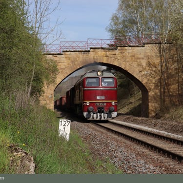Leider beginnt der Freitag mit einem Streik bei einem Teil der DB-Mitarbeitenden, was zu erheblichen Verzögerungen bei der Abfahrt und dem gesamten Fahrverlauf führt. Dennoch können wir am Nachmittag einige beeindruckende Aufnahmen auf der Strecke nach Zeitz machen. Am Samstag befahren wir dann die Saalfelder Strecke, und am Sonntag geht es durch das malerische Elstertal. Drei wunderschöne Fototage enden höchst zufriedenstellend – es war ein wahres Fest, diese eindrucksvolle Maschine wieder in Aktion zu erleben.